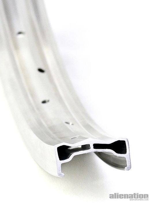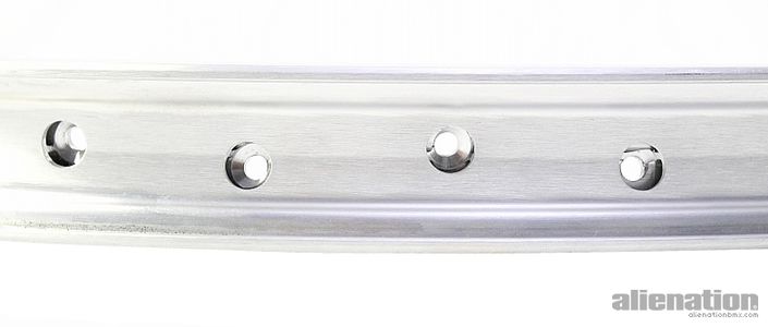 The Felon uses the most advanced drilling pattern of any bicycle rim on the market today. We call it 4D. The four directions chamfer-drilled allows the spoke nipple to follow the line of the spoke with no bending load. Too by chamfering the spoke bed we’re spreading the point load thus the material is less stressed.
