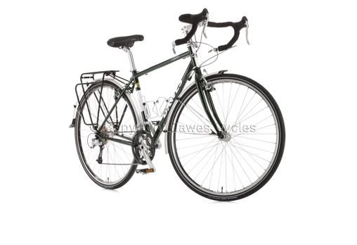 The legendary Galaxy features another legendary tubeset from Reynolds 631. The forks use triple butted chromoly blades that make for a smooth but reliably strong ride for the longest journeys. Equipped with 27 speed Shimano Deore gears with bar end shifters,Shimano cantilever brakes, Tubus Logo carrier, Alex double wall eyeletted rims, Shimano hubs and Schwalbe tyres. The Galaxy is a great touring bike and the best known for a good reason.