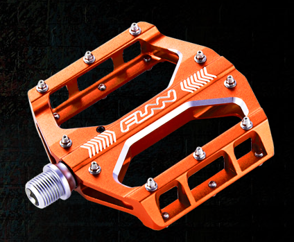 LOW PROFILE FLAT PEDAL. THE BODY IS CONSTRUCTED FROM 6061 ALLOY EXTRUDED THEN CNC FINISHED. THE PEDAL HAS THE FUNN PURGE GREASE PORTS THAT ALLOW NEEDLE BEARING MAINTENANCE WITHOUT TAKING THE PEDAL APART. TEN PINS PER SIDE WITH 6 SIDED HEX KEY FOR EASY REMOVAL.