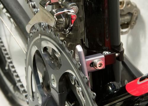 The K-Edge is lightweight, robust, and specifically for cyclocross bikes with double chainrings and mounts below existing clamp-mounted front derailleurs. It works with double chainring systems and prevents the chain from being thrown inward of the small ring due to shifts in the heat of battle on bumpy racecourses. It has a long-lasting protective anodised finish and highly recommended to prevent structural damage to carbon and aluminum frames, but also protects the finish of any other frame material.