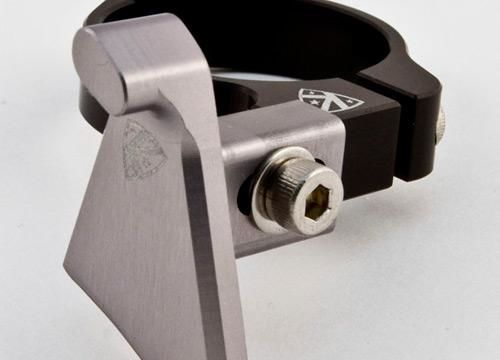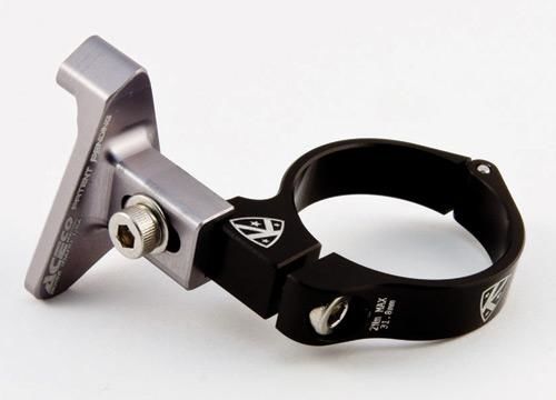 The K-Edge Cross Single Chain Catcher is made out of 6061 T6 aluminum and fits all frames with a flared down-tube, Its available clamp is 31.8mm & 34.9mm. It is Specifically designed for the extreme conditions of cyclo-cross. It clamps independent of front derailleur and adjustable cross foot mounts to its own CNC sculpted lightweight clamp. It also adds additional protection to a single ring set-up by preventing the chain from jumping up or off the ring.