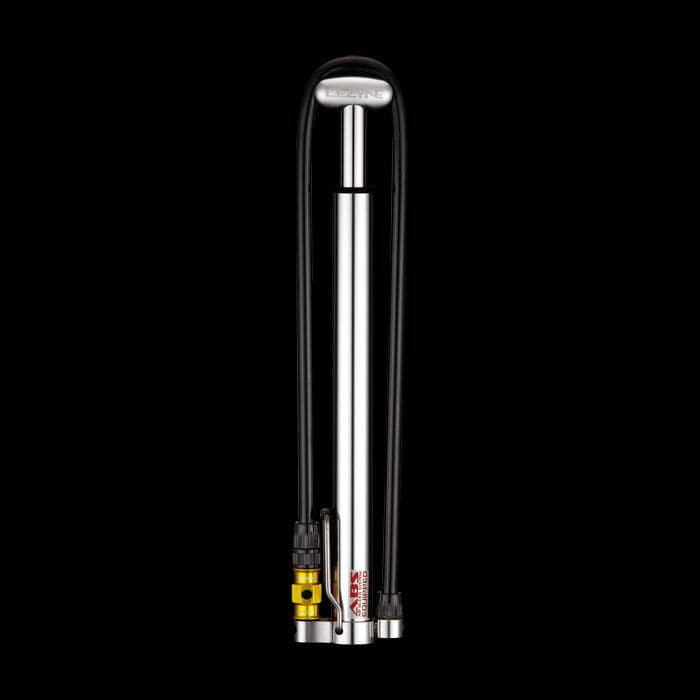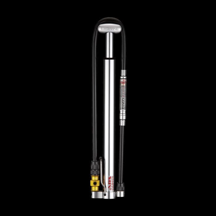 A compact HP pump design that brings floor pump function and power along for the ride. The aluminum barrel, shaft, base, and T-handle are custom CNC-machined for durability, ergonomics and reduced weight. A stainless steel wire foot peg provides stability while pumping. The ABS Flip-Thread Chuck and 24" | 60cm long rubber hose makes it easy to reach both Presta and Schrader valves. Speed Chuck is also included. HPG model features in-line pressure gauge with marks for psi/bar. Includes Composite Matrix frame pump mount.