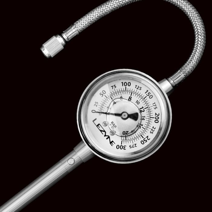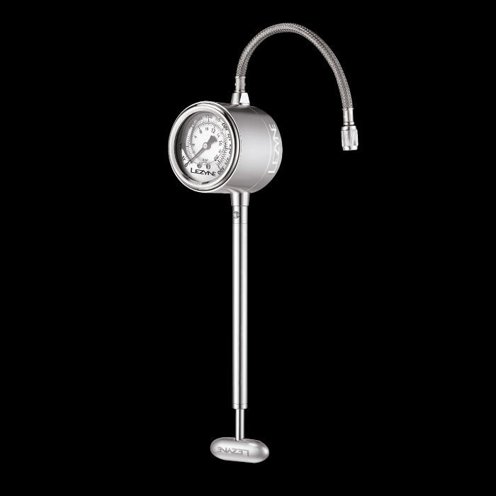 A heavy-duty shock pump for daily shop use. All parts are custom CNC-machined aluminum. The oversized oil-filled gauge is durable, accurate and easy to read. The high-pressure steel braided hose threads onto shock valves for a secure connection during inflation. The hose detaches from pump for easy storage. An ergonomically shaped handle is designed to be easy to grip while inflating at high pressures. Equipped with a bleeder valve to easily adjust shock pressure.