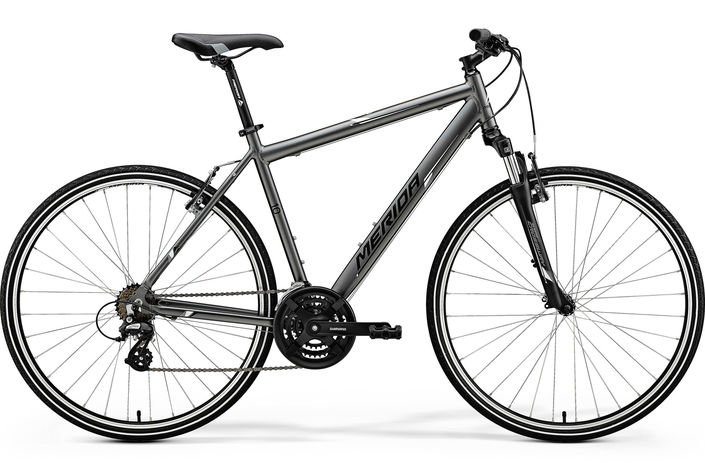 The 2018 Merida Crossway 10 is a recreational bike. Welcoming to beginners and those recently returned to cycling, it's equipped with a tremendous gear range, forgiving to the un-trained muscles, big plastic platform pedals and a chainguard to protect casual wear aboard, and a cushy saddle and grips, always kind to the contact points. Seating is relaxed and near-upright, with a sturdy suspension fork to take the sting out of the occasional curb or pothole.