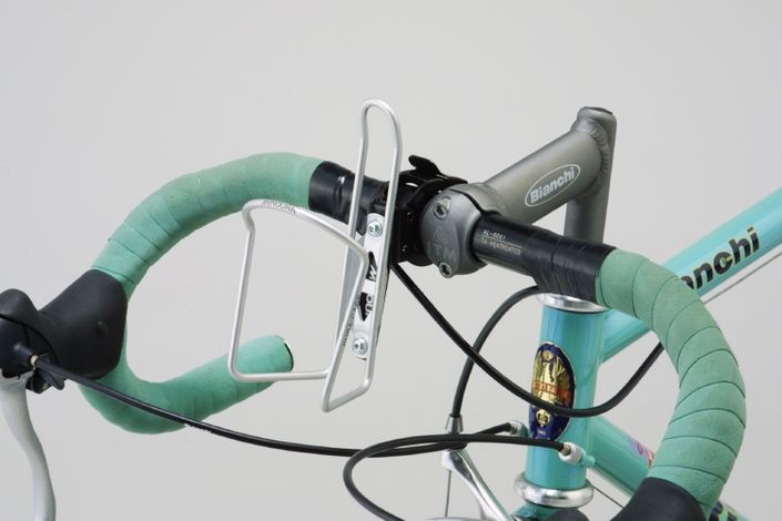 Quick release type bottle cage holder. A holder for an extra bottle cage on handlebar.