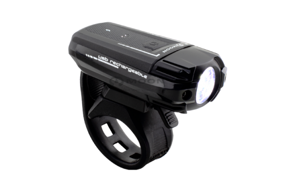 The 2015 Moon Meteor 200 is a front light. Dedicated use, with a lens keeping the light efficiently in a fifty-degree span ahead. The Meteor is multi-purpose, serving well as both safety and illumination, with choice of mode: the Strobe mode provides a very bright, attention-getting flash and Overdrive offers nearly two hours of clear seeing. Recharging takes only two hours for a full charge, using mains or USB connection with the included cable.