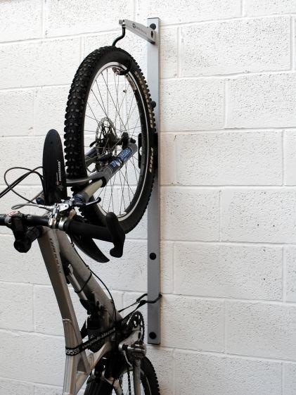 The large tyre holder holds the wheel steady and stops it from making contact with the wall. This stand is ideal for moving up a step from the generic DIY store hook in the ceiling to something more substantial or in scenarios where hanging from the wall is the only option. Another advantage is the ability to place the holder at a height that suits your needs rather than being limited by the height of the ceiling.