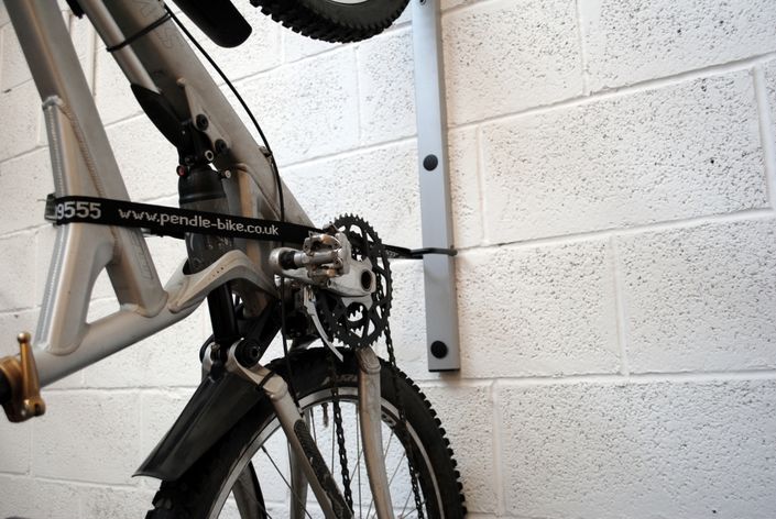 The Pendle Hang Up Holder (HUH) Long is a simple holder that allows you to hang your bike from a wall. It features a large, strong, plastic coated hook that makes it easy to hang your bike. Innovative snap together laser cut construction makes it easy to assemble from a flat pack with just 1 bolt to hold it together. The Long Version provides a tyre holder to hold the bike clear of the wall and give extra support to the tyre, it also includes a security loop positioned close the the bottom bracket of the bike. This allows the user to strap the bike down firmly in place or to pass through a bike lock as part of a theft deterrent system.
