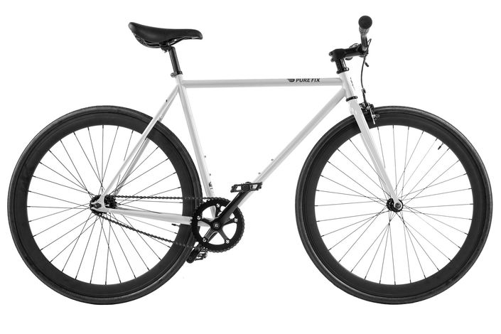PureFix's The Quebec proves you simply can't go wrong with the clean black-on-white look. This machine makes a fine daily commuter or a vehicle for a night on the town. A classic steel frame and fork offer a smooth ride. Parts from Wellgo, Oury, and Kenda combine with PureFix's housebrand components for reliability and low maintenance. A flip-flop rear hub lets you choose between fixed gear and freewheel. Gold-anodized parts add a touch of class to this machine.