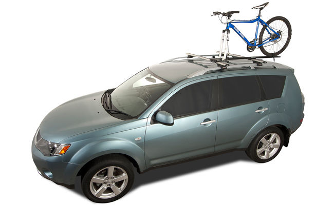 Our new pre-assembled roof mounted MountainTrail RBC035 bike carrier, with a stylish matt black look, combines the unique features pioneered in our other best selling Roof Top Bike Carriers. Remove the front wheel and lift your bicycle onto the MountainTrail, the rear wheel fits into a securing wheel strap made from rubber coated stainless steel. The bike forks are then secured onto the adjustable locking skewer at the front. How easy, is that!