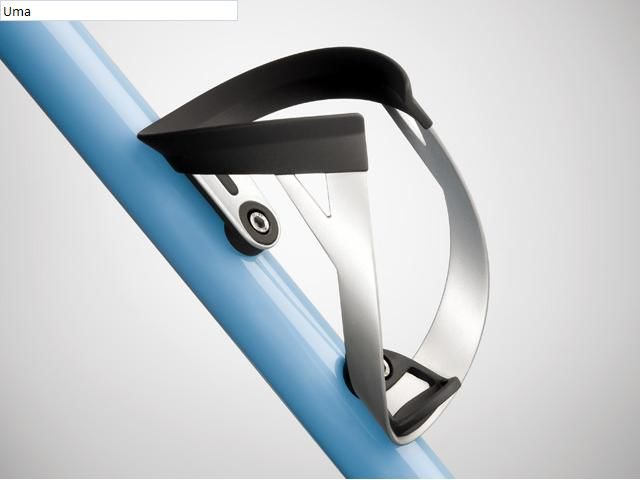 Uma is Tacx's newest bottle cage in the high end collection. As of 2011 the riders of all the Tacx sponsored Pro Teams will have bikes equipped with this sturdy and stylish bottle cage. The Uma bottle cage teams up with the Shiva water bottle, also new, to form a perfect pair. Uma's design is surprisingly powerful; the metallic look gives the cage a high-grade appearance. The bottle cage is manufactured from an aluminium sheet and then covered in plastic. This production method results in a highly durable and light weight structure. The bottle cage offers a very firm hold on its content, which is essential to cyclists facing rough roads anywhere or the cobbles in northern France or Belgium. Uma was also designed to make fitting the water bottle easy as pie. The carbon version will be available as from 2011.